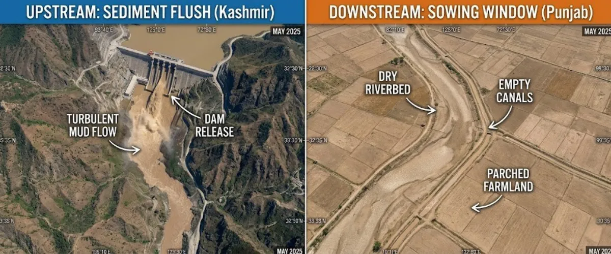 Deep in Indian-administered Kashmir, engineers executed what looked, on paper, like a routine technical procedure: a "sediment flush." They opened the sluice gates to purge millions of tons of silt, then slammed them shut to refill the reservoir but the timing was not accidental. It was synchronized perfectly with the Kharif sowing window in Pakistan’s Punjab; the precise moment when every drop of water is the difference between a harvest and a famine.