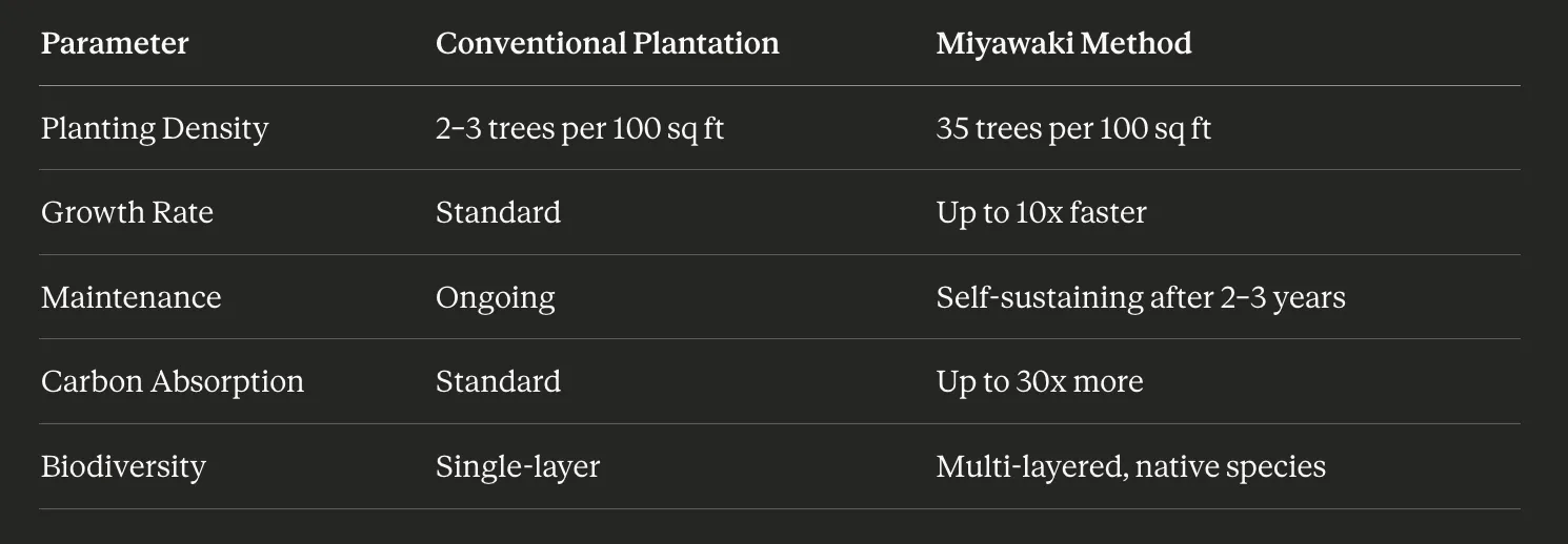 In response to spatial constraints and soaring land values, traditional parkland models are increasingly unviable. What is gaining extraordinary traction across India is the Miyawaki method — a technique explicitly engineered to cultivate dense, native, self-sustaining micro-forests in spaces as small as 30 square feet.