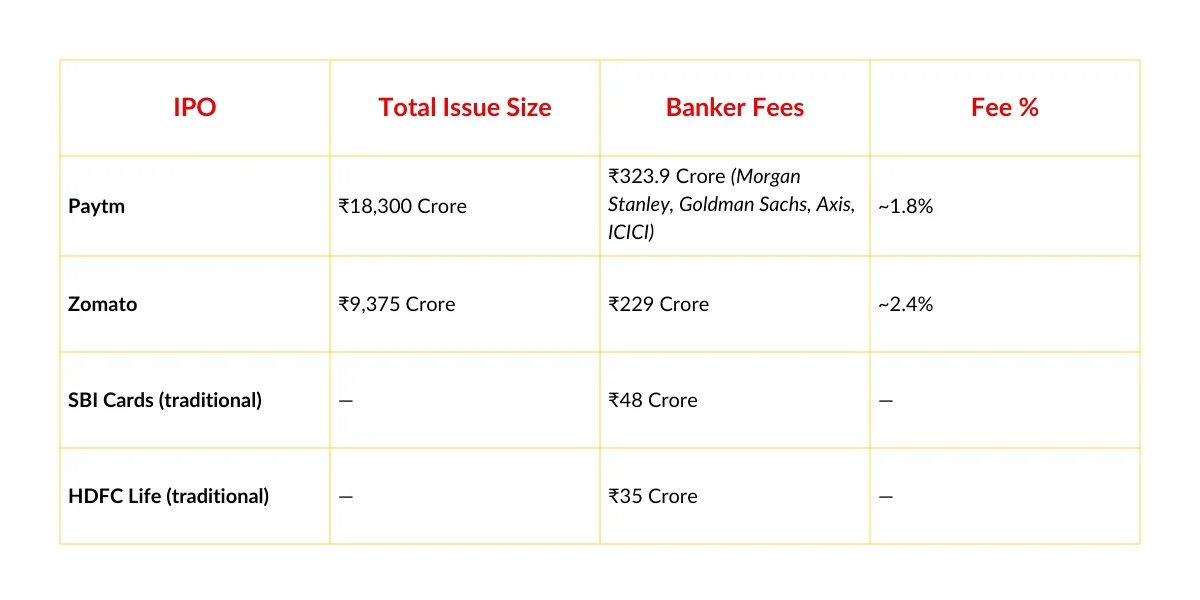 Paytm's ₹324 crore fee pool was one of the largest in Indian IPO history—nearly 10x the fees for traditional, profitable company IPOs like SBI Cards or HDFC Life. The correlation is obvious: Higher valuations = Bigger fees.